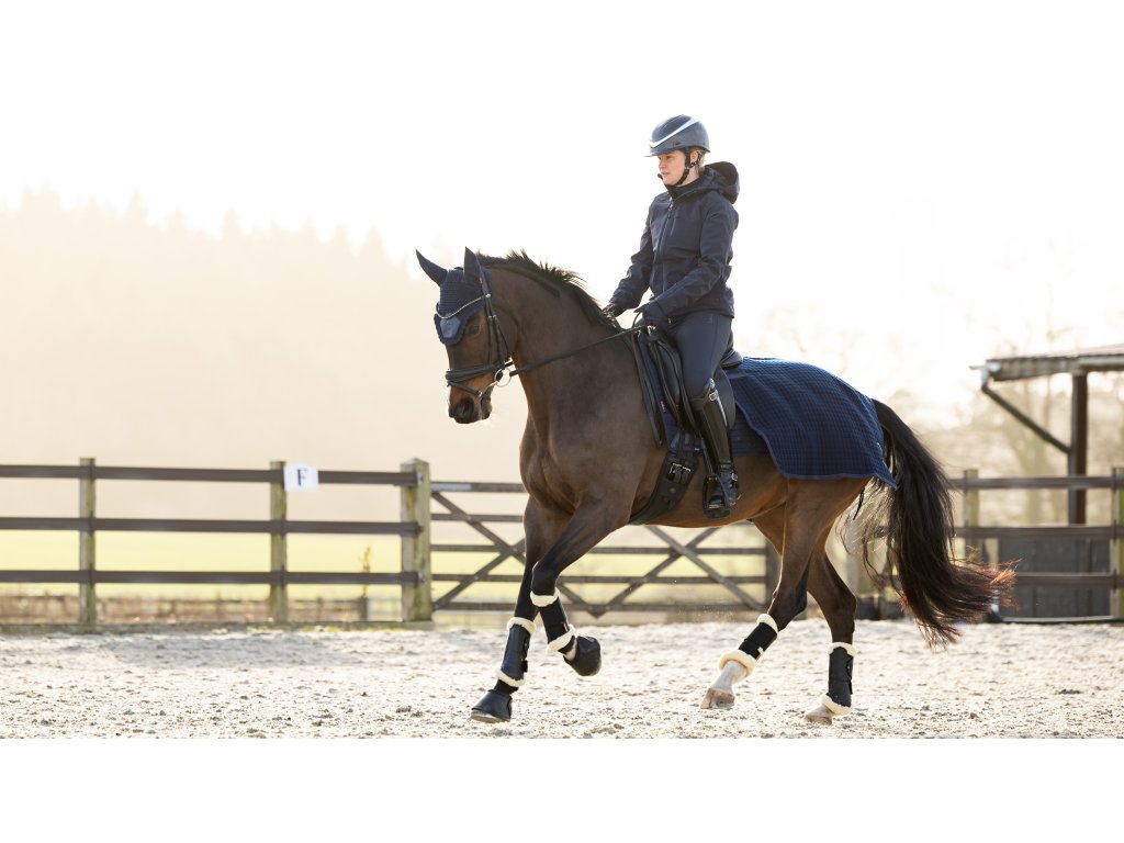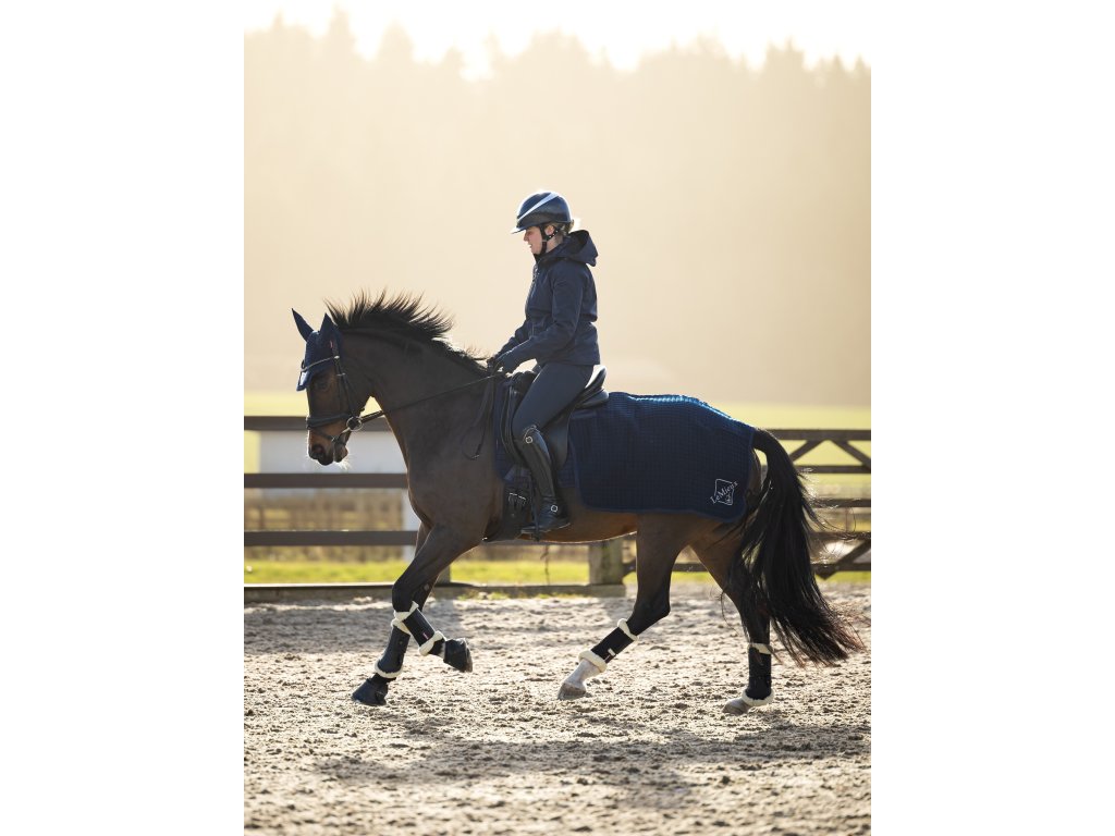 Vícevrstvá struktura bederní deky LeMieux Clima-Tek má unikátní směs tkanin, díky čemuž je ideální pro regulaci vlhkosti za pohybu.