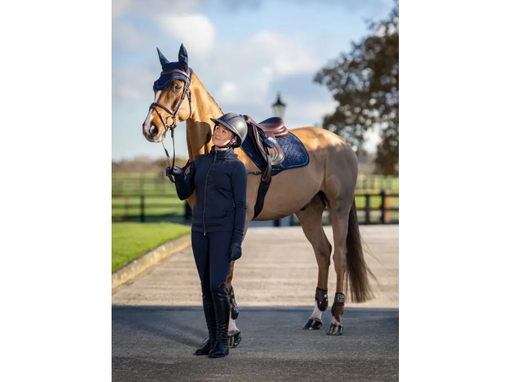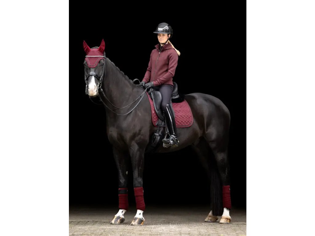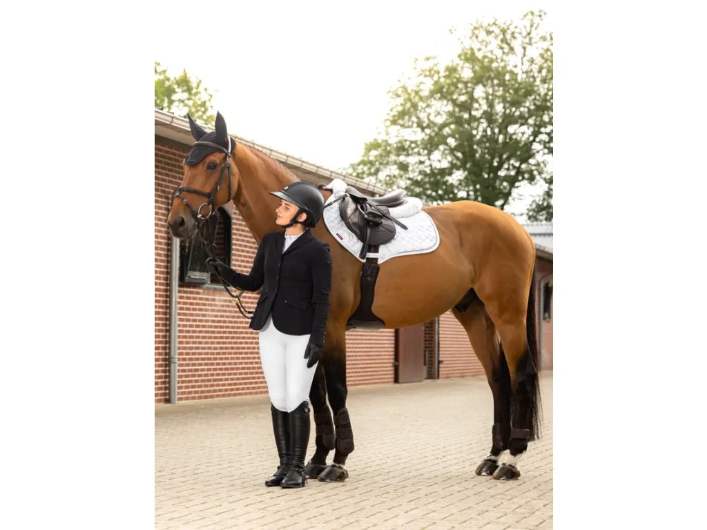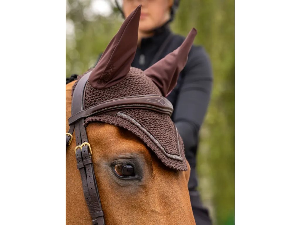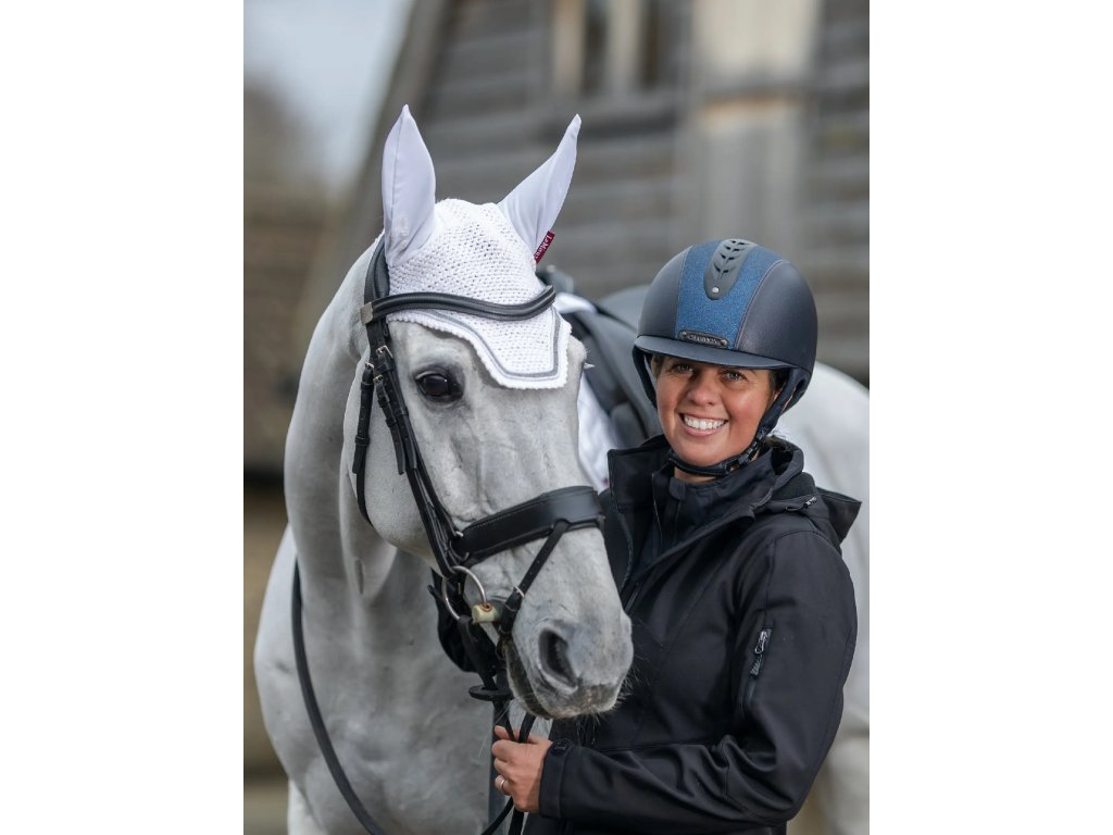 Čabraka Crystal je navržena tak, aby vynikla. Tato čabraka s nádherným třpytem a pletenými detaily je ručně háčkovaná ve složitém čtyřcestném vzoru a má měkké strečové uši, které chrání uši vašeho koně před mouchami a rušivými vlivy. Tato elegantní čabraka je navržena pro výkon a soutěžení a nabízí dokonalou kombinaci stylu a funkce. Bezpečná a přiléhavá pod uzdou pro maximální pohodlí, s minimálním brandingem pro elegantní a profesionální vzhled.