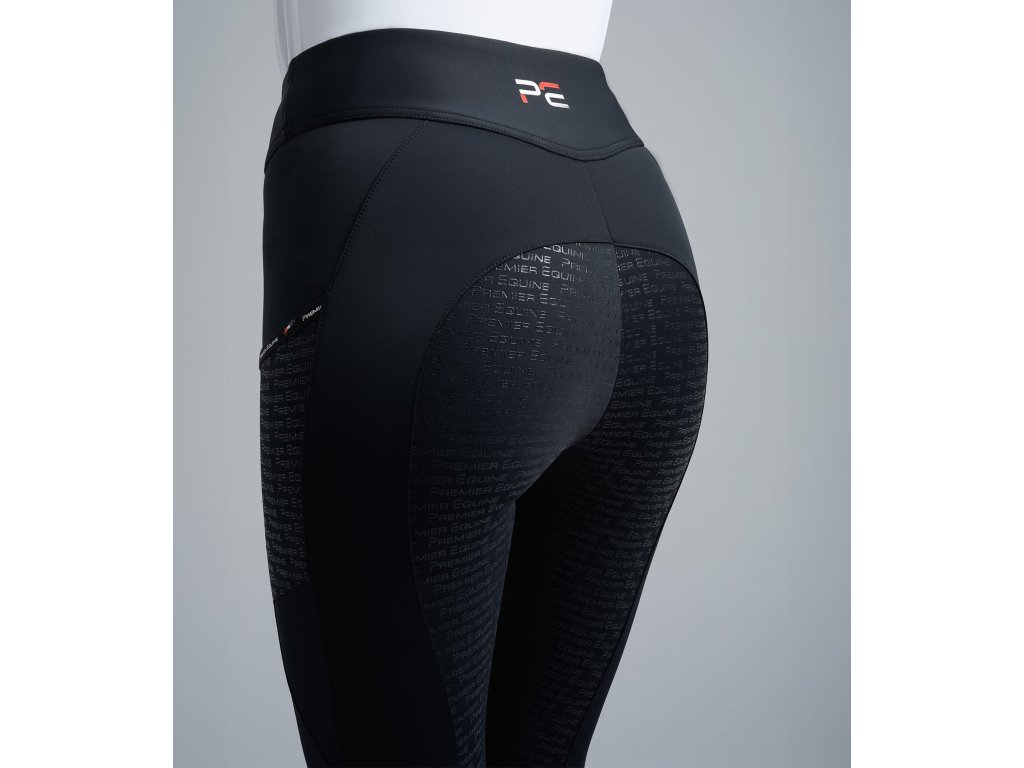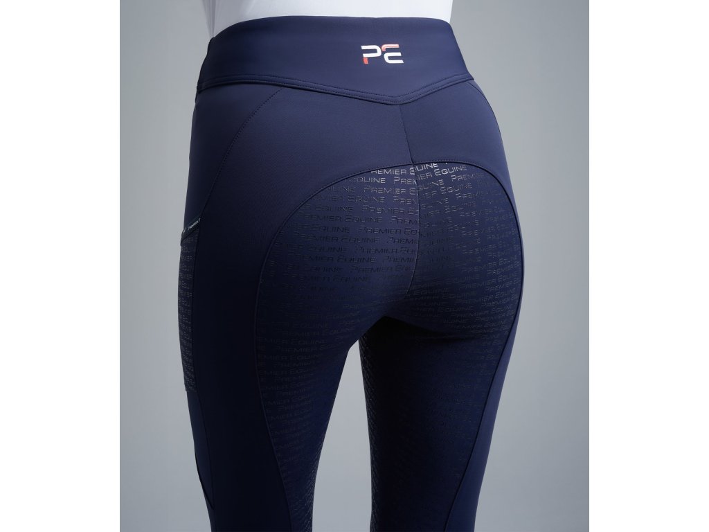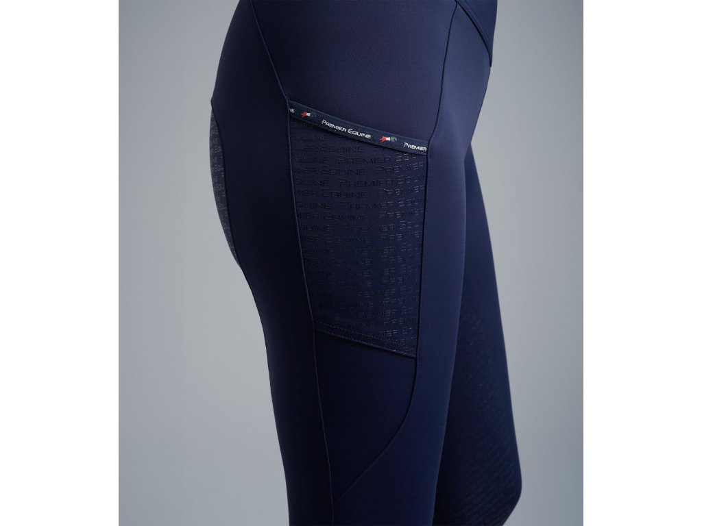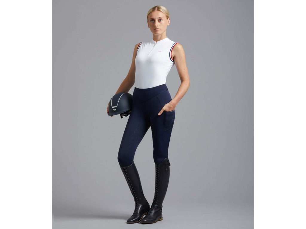 Tyto jezdecké legíny poskytují celodenní pohodlí a mají plné sedlo ze značkového silikonového gelu, který zlepšuje stabilitu v sedle. Dvě kapsy na telefon byly umístěny strategicky, s PE značky odpovídající gelovému tisku kalhot, zakončené značkové švy, které vytvářejí funkční a sportovní estetiku.