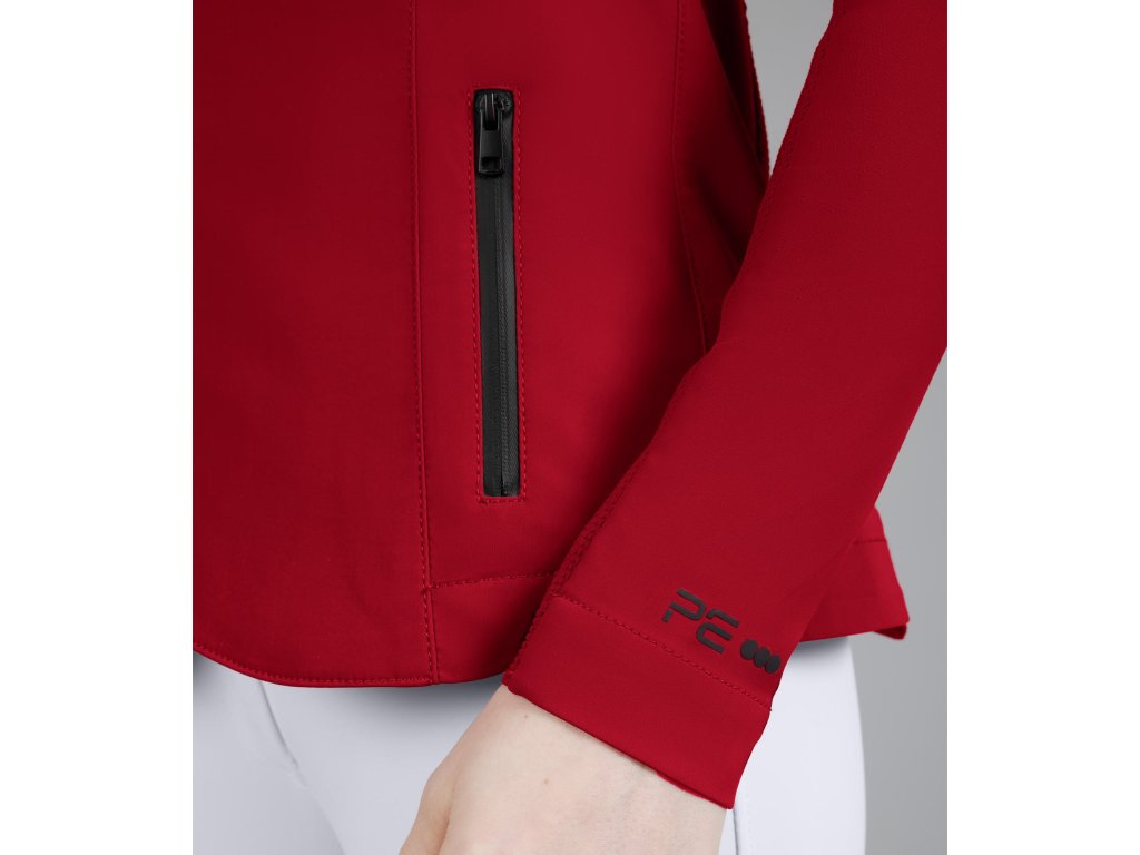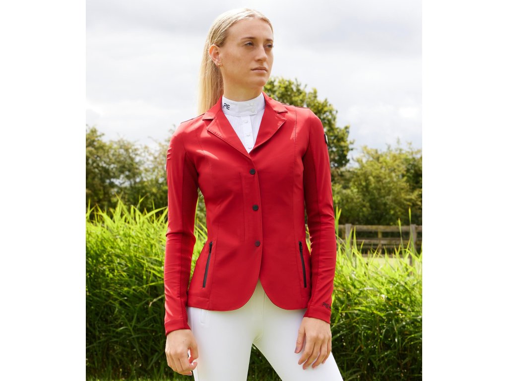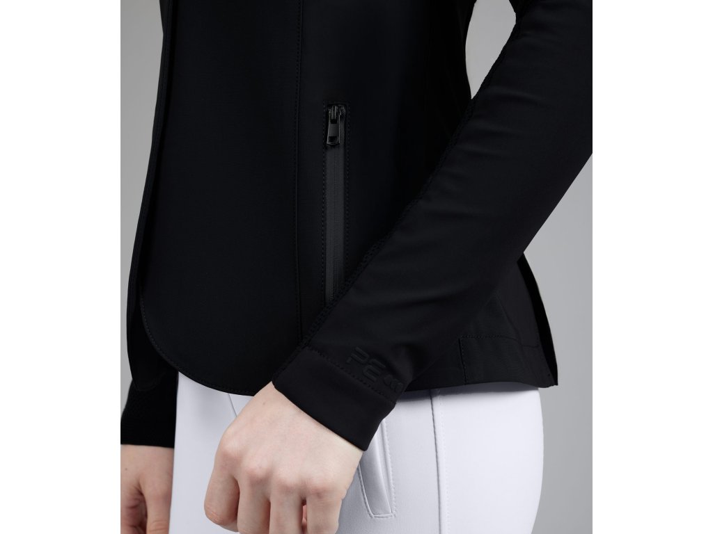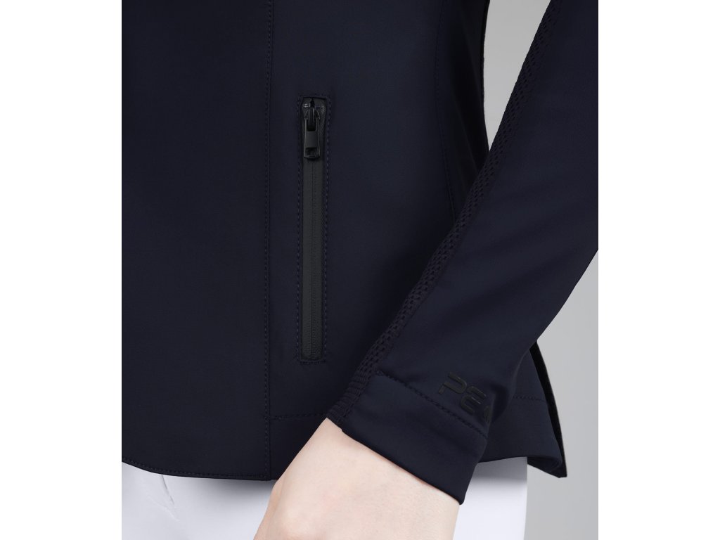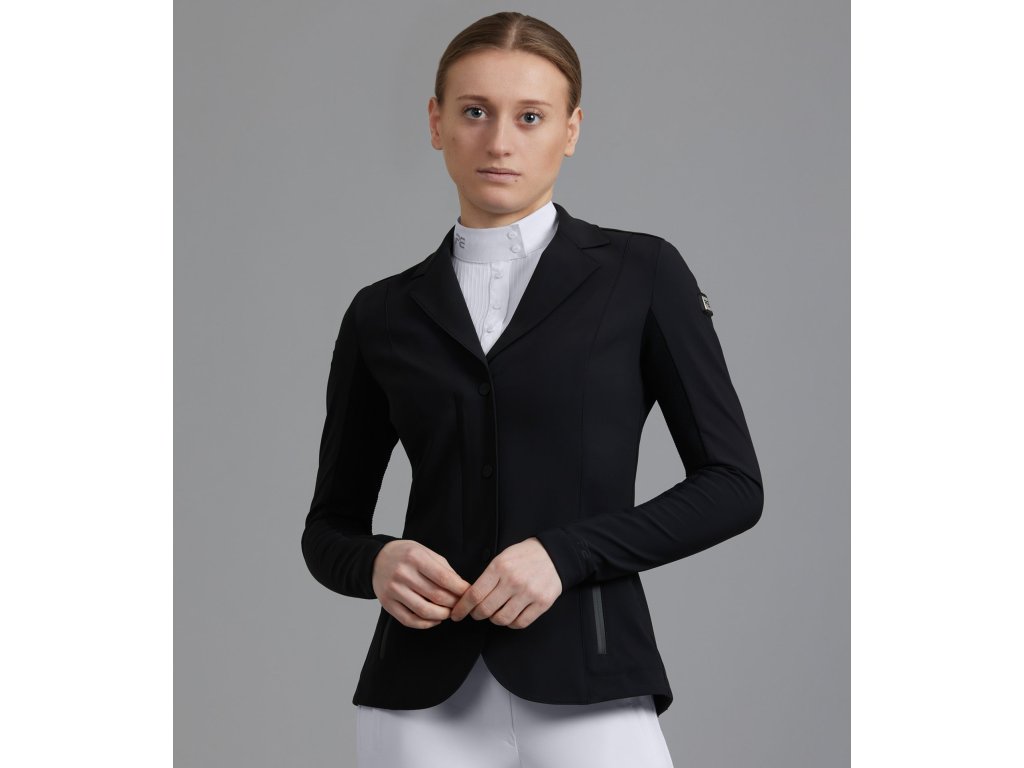 Tato dámská závodní bunda je ideální pro širokou škálu jezdeckých disciplín. Zúžení tohoto inovativního designu kombinuje panely z různých technických tkanin. Přední strana této bundy je vyrobena z lehkého elegantního materiálu, který je luxusně měkký na dotek a příjemný na dotek. Záda a paže, vyvinuté pro moderní jezdce, obsahují technický 3D úplet, který je tvarován podle svalnaté anatomie zad a ramen jezdce. Tato inovativní konstrukce umožňuje větší volnost pohybu a zároveň vytváří bezkonkurenční prodyšnost, která je ideální pro intenzitu soutěže.