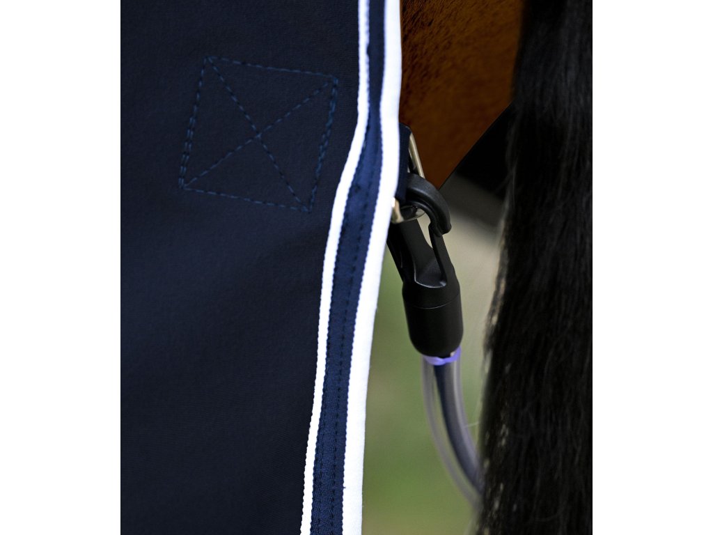 Tato deka je vyrobena z vysoce výkonné, antistaticky ošetřené žerzejové tkaniny s měkkou fleecovou vnitřní podšívkou a poskytuje vašemu koni jemnou izolační vrstvu. Její sportovní, přiléhavý střih zvyšuje pohodlí i vzhled, zatímco dvojité zapínání ve tvaru T vpředu s dvojitým suchým zipem zajišťuje bezpečné uchycení. Stabilizační prošití u výstřihu zabraňuje natahování a zachovává tvar deky v průběhu času. Deka obsdahuje pásek pod ocas s omyvatelným PVC potahem pro snadnou údržbu a kombinuje prémiové materiály s chytrým designem, což z ní činí nezbytnou součást každodenního pohodlí a regenerace po tréninku.