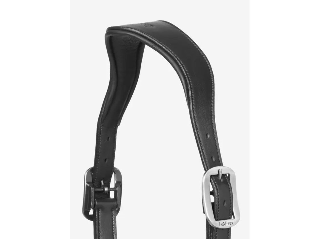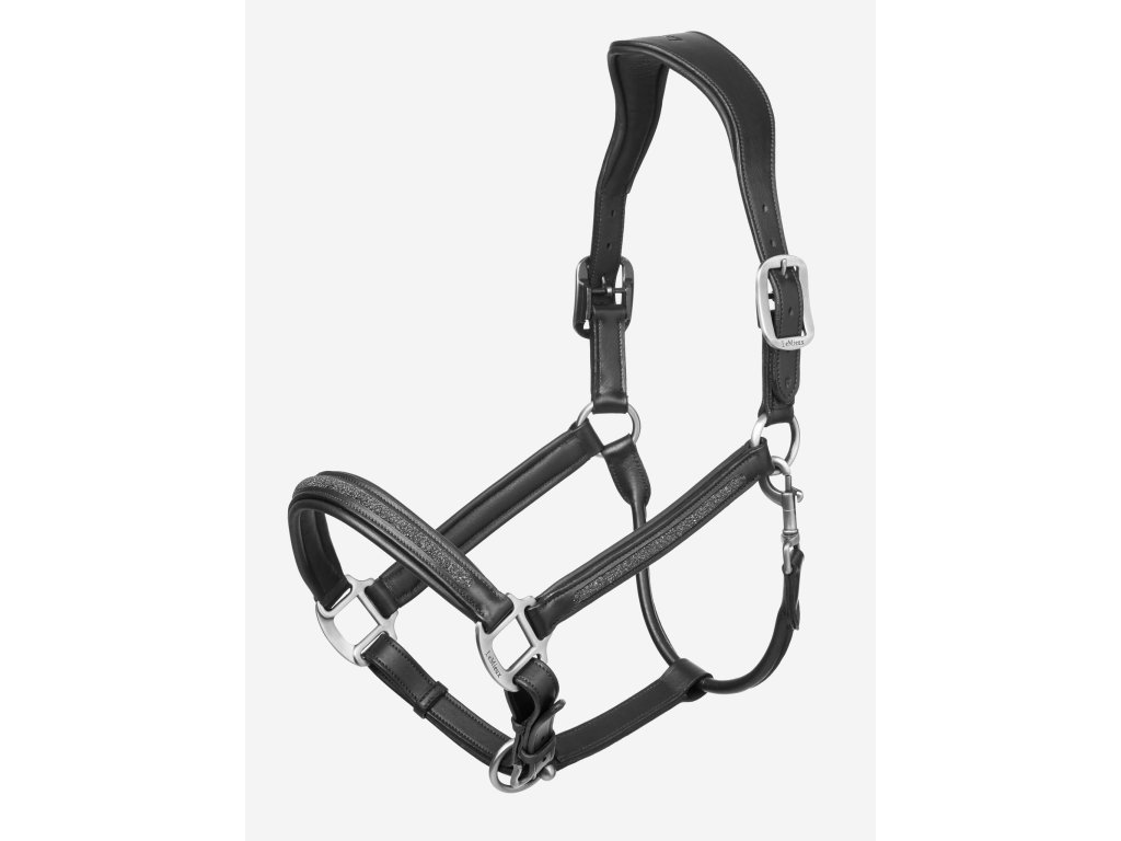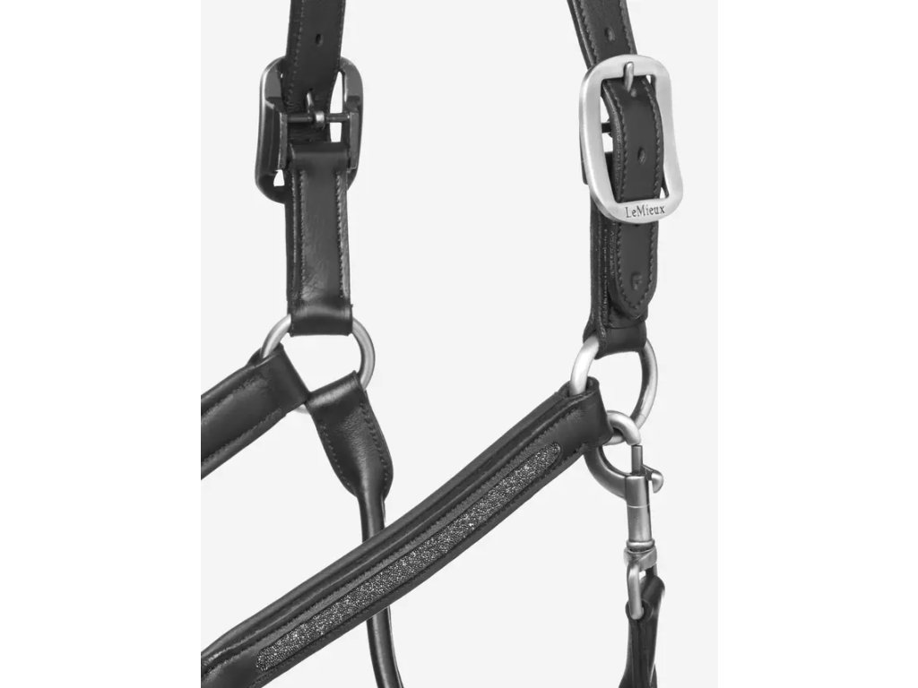 Tato úžasná kožená ohlávka je vyrobena v charakteristickém stylu LeMieux, který je ideální pro cestování, speciální události nebo jednoduše povznesení každodennosti. Elegantní vykládané detaily křišťálových panelů jemně zachycují světlo. Kovová konstrukce z červeného bronzu s decentní značkou LeMieux vyjadřuje kvalitu. Anatomicky tvarovaný a polstrovaný nátylník a nánosník zajišťují vašemu koni maximální pohodlí a bezpečnost.