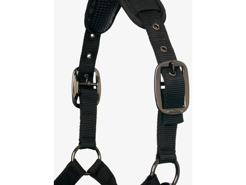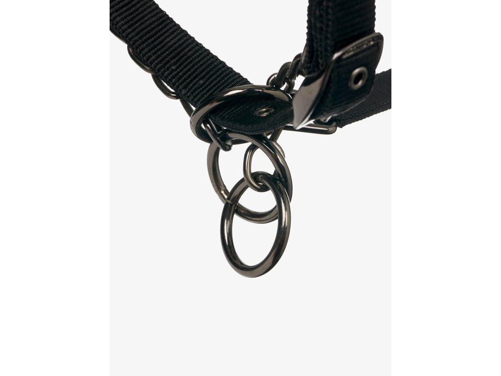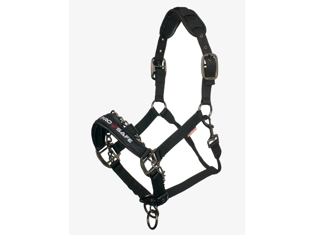 Navrženo pro dokonalé ovládání v ruce. Ideální pro živé koně a poníky a hřebce. Pro-Safe má robustní silný dvojitý nylonový pevný kovový řetízek a kování. Design s trojitým kroužkem vytváří 3 možnosti pro různou úroveň kontroly a závažnosti, zatímco přední část a polstrovaný nánosník z PVC pryže umožňují zároveň tlumící pohodlí. Tyto ohlávky jsou určeny pouze pro použití v ruce. Nevhodné pro vázání.