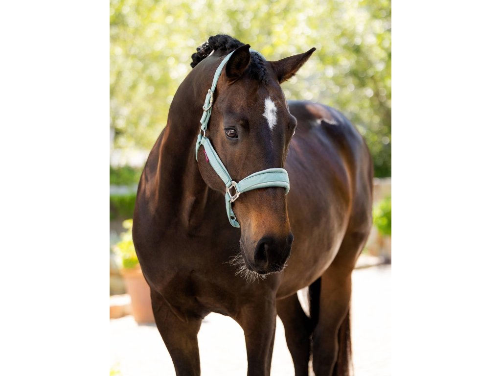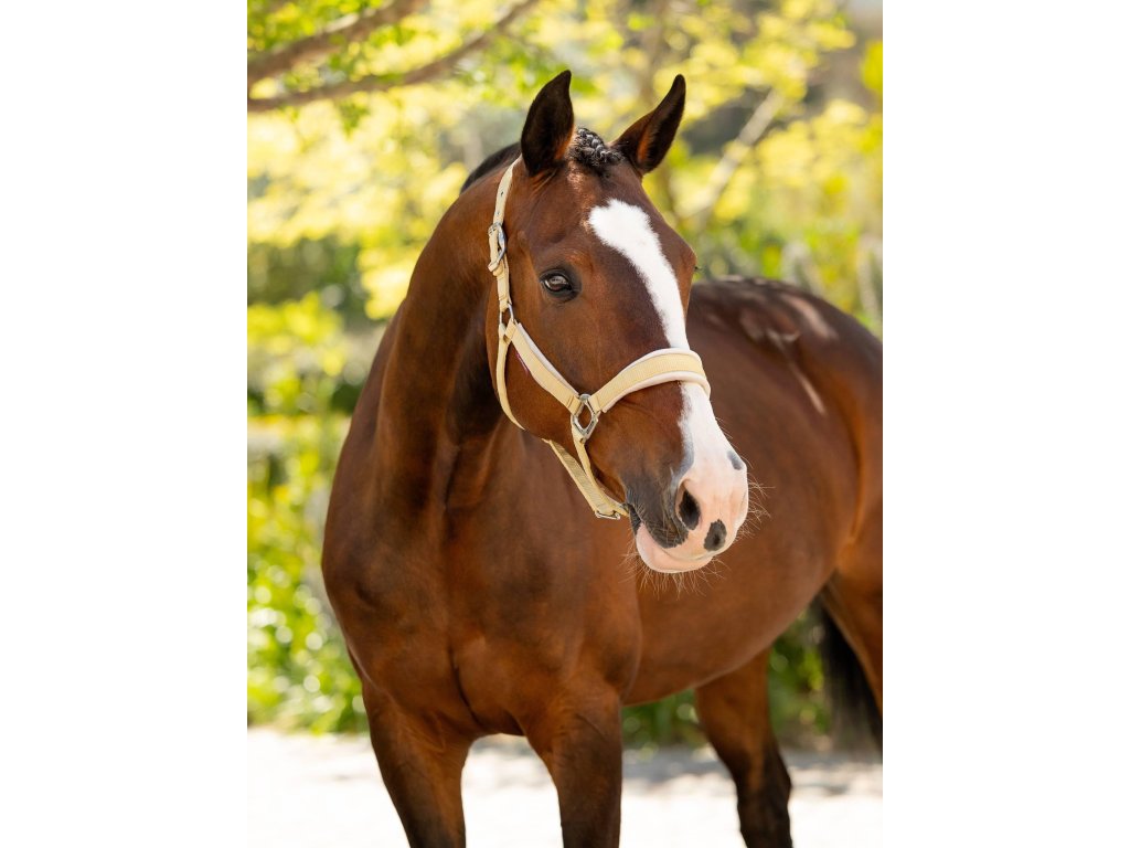 Veďte koně v luxusu s krásnou ohlávkou Versailles. Dopřejte svému koni bezkonkurenční pohodlí s touto měkkou ohlávkou. Je navržena s polstrovanými sametovými vložkami na nátylníku, lícních dílech a nánosníku, které zajišťují rovnoměrné rozložení tlaku pro maximální pohodlí. Ohlávka je nastavitelná z obou stran na nátylníku a nánosníku. Poniklované zinkové přezky a zapínání a výšivky LeMieux dodávají ohlávce styl. Ohlávka Versailles se nedodává s vodítkem.