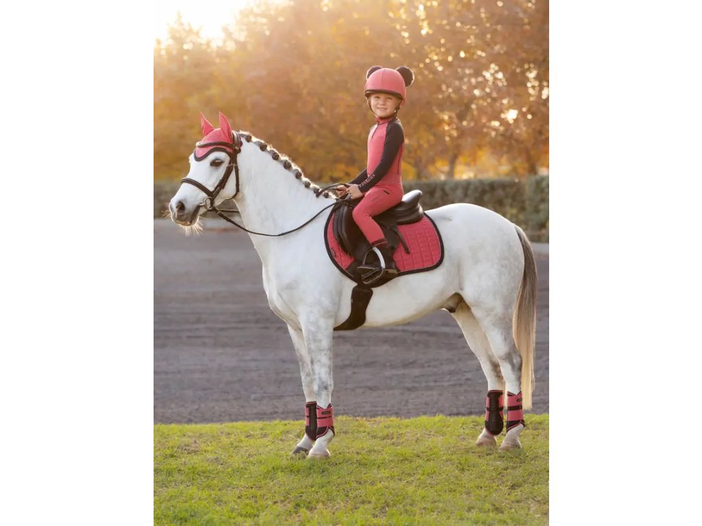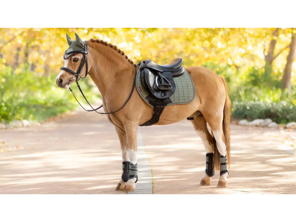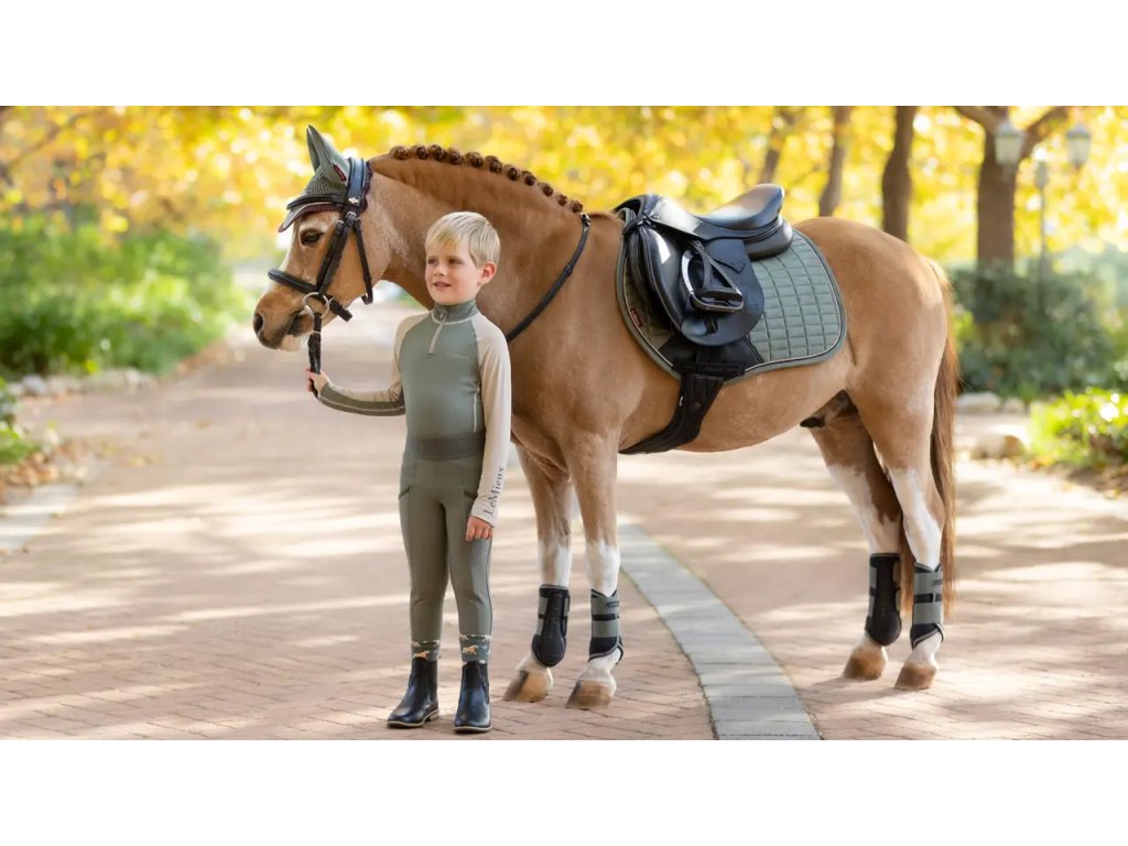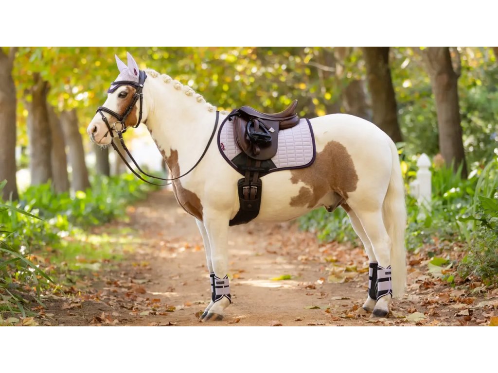 Podsedlová dečka Mini Suede Close Contact je navržena tak, aby vyhovovala poníkům pro skoková sedla. Ikonická skoková dečka s vysokým střihem v kohoutku a zahnutým profilem vzadu nabízí praktičnost a pohodlí pod sedlem. Luxusní, ale snadno udržovatelný svršek se semišovým efektem je ideální pro každodenní příležitosti. Je zakončena elegantní páskou na páteř značky LeMieux, zatímco tvarované šití bez tření zabraňuje deformaci. Charakteristická prodyšná podšívka z přírodní bambusové směsi absorbuje a reguluje pot pod sedlem a je přirozeně antistatická, antimikrobiální a rychleschnoucí. Je také krásně pohodlná a bezpečná a minimalizuje tření i u koní s citlivou kůží. Odolná ochranná oblast podbřišníku zajišťuje trvalou kvalitu. Držáky podbřišníků obsahují vnitřní smyčkové kanály, které nabízejí více možností podbřišníku pro optimální přizpůsobení. Elastické tvarované poutka s D-kroužkem umožňují snadné, neklouzavé připevnění k sedlu a zároveň ponechávají prostor pro připnutí dalších tréninkových pomůcek.