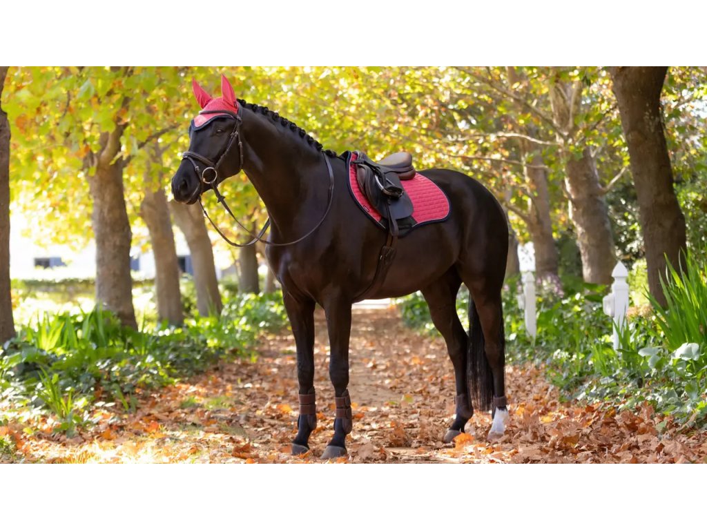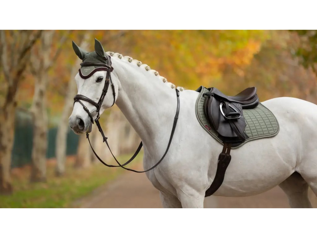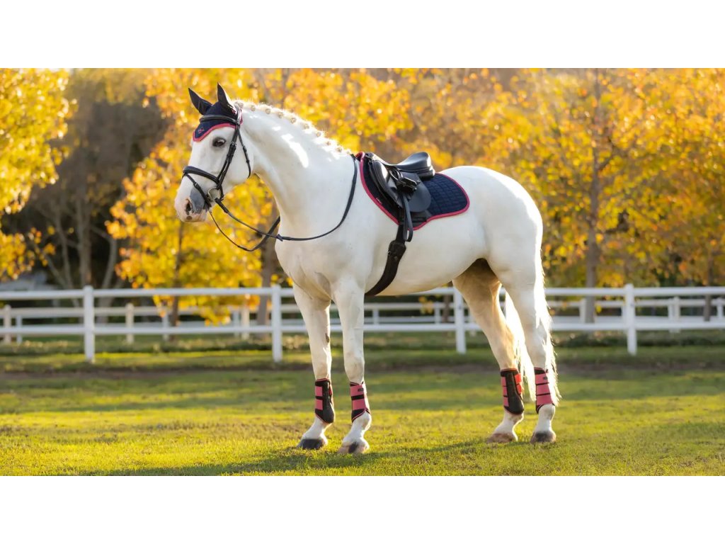 Ikonická skoková dečka s vysokým střihem v kohoutku a zahnutým profilem vzadu nabízí praktičnost a pohodlí pod sedlem. Luxusní, ale snadno udržovatelný svršek se semišovým efektem je ideální pro každodenní příležitosti. Je zakončena elegantní páskou na páteř značky LeMieux, zatímco tvarované šití bez tření zabraňuje deformaci. Charakteristická prodyšná podšívka z přírodní bambusové směsi absorbuje a reguluje pot pod sedlem a je přirozeně antistatická, antimikrobiální a rychleschnoucí. Je také krásně pohodlná a bezpečná a minimalizuje tření i u koní s citlivou kůží. Odolná ochranná oblast podbřišníku zajišťuje trvalou kvalitu. Držáky podbřišníků obsahují vnitřní smyčkové kanály, které nabízejí více možností podbřišníku pro optimální přizpůsobení. Elastické tvarované poutka s D-kroužkem umožňují snadné, neklouzavé připevnění k sedlu a zároveň ponechávají prostor pro připnutí dalších tréninkových pomůcek.