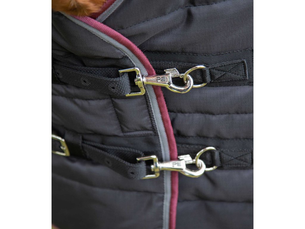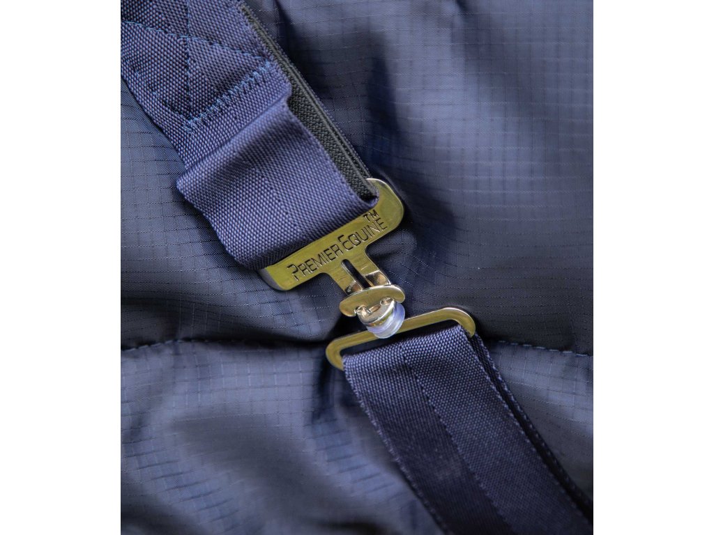 Strategicky umístěné hrudní spony, otočné spony a kování jsou odborně vyrobeny z vysoce kvalitní nerezové oceli pro dlouhodobou funkčnost. Můžete zažít bezstarostné dekování, protože deky Premier Equine umožňují koni se volně pohybovat, aniž by klouzali. Podšívka této deky, vyrobená z antistatického polyesteru, pomáhá předcházet tření a je příjemná na kůži vašeho koně.