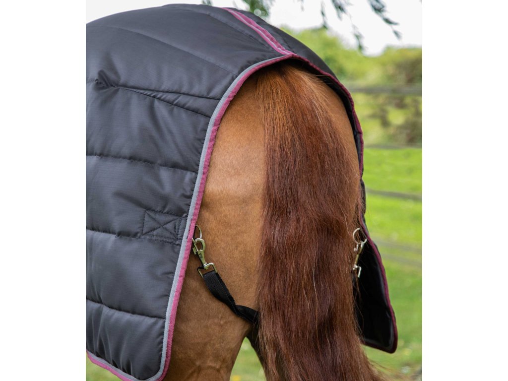 Táto prošívaná stájová deka nemá žádný krční díl, takže je ideální pro koně, kteří preferují deku bez krku.