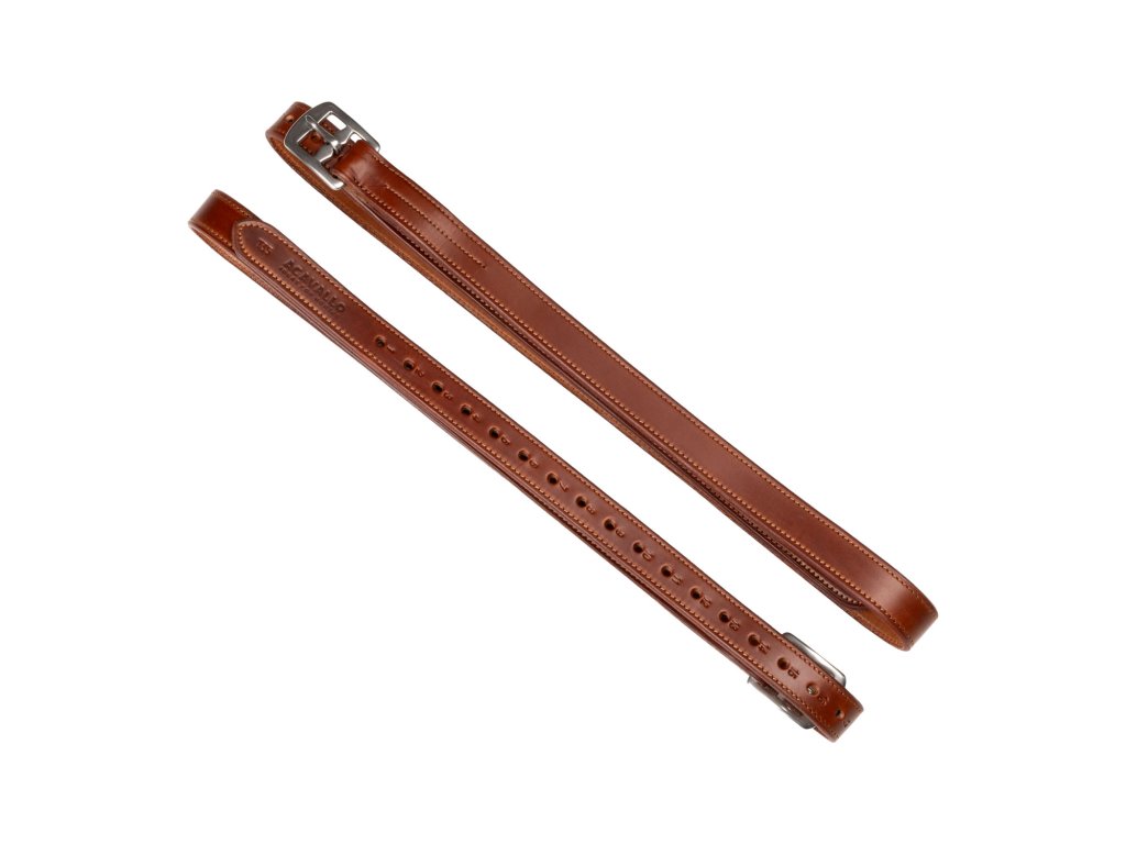 Třmenové řemeny z telecí kůže s vnitřní nylonovou podporou byly vyrobeny tak, aby vyhovovaly potřebám a pohodě jezdců. Kombinují vnější měkkost kůže s tuhostí a odolností nylonu.
